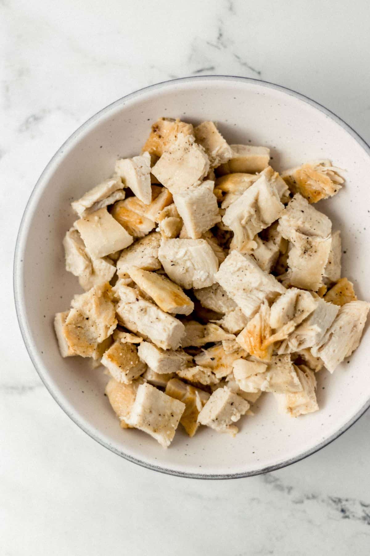 - Chicken Breasts - Use breast, thighs, or rotisserie. Diced small for even bites.