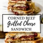This Corned Beef Grilled Cheese is the ultimate St. Patrick's Day sandwich, made with buttery toasted bread, caramelized onions, melted cheese, and corned beef. Simple, flavorful, delicious!