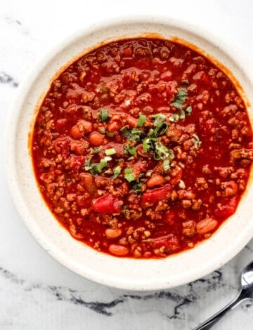 The best part about chili is making it your own! I love setting up a topping bar so everyone can customize their bowl exactly how they like it.