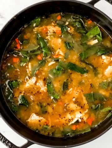 Savory turkey broth, tender rice, silky greens, and just enough herbs and spices to feel like Sunday supper in a bowl.