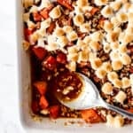 Refrigerator: Store leftovers in an airtight container for up to 4 days. The butter may solidify when cold, this is normal and will melt when reheated. Reheating: Warm in the oven at 300°F until heated through, or microwave individual portions. Tastes even better the next day! Freezer: Prepare the casserole without marshmallows, cover tightly with plastic wrap and aluminum foil, and freeze for up to 30 days. Thaw overnight in the refrigerator, add marshmallows, and bake as directed. Can also be baked from frozen (increase cooking time).Recipe Notes