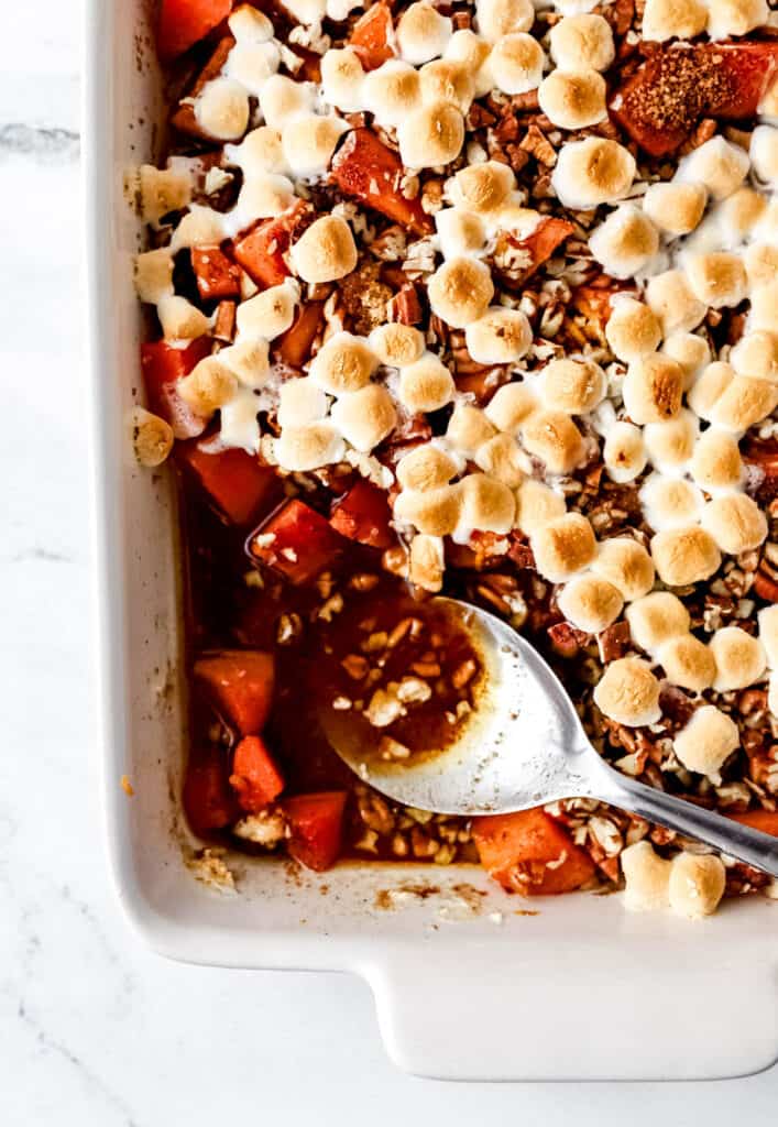 - Marshmallow timing: Watch the casserole closely during the last 5-10 minutes of baking. Marshmallows can go from perfectly golden to burnt quickly.