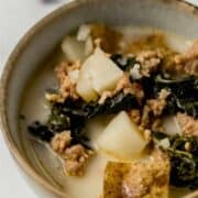 Try making a cozy bowl or two of this Potato, Kale, and Sausage Soup that is extremely similar to Zuppa Toscana Soup which is rich in flavor with a creamy broth and super delicious!