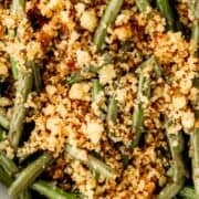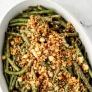 - Assemble and serve: Spoon the green beans into a serving dish and sprinkle the toasted cornbread crumbs over the top. Serve warm.