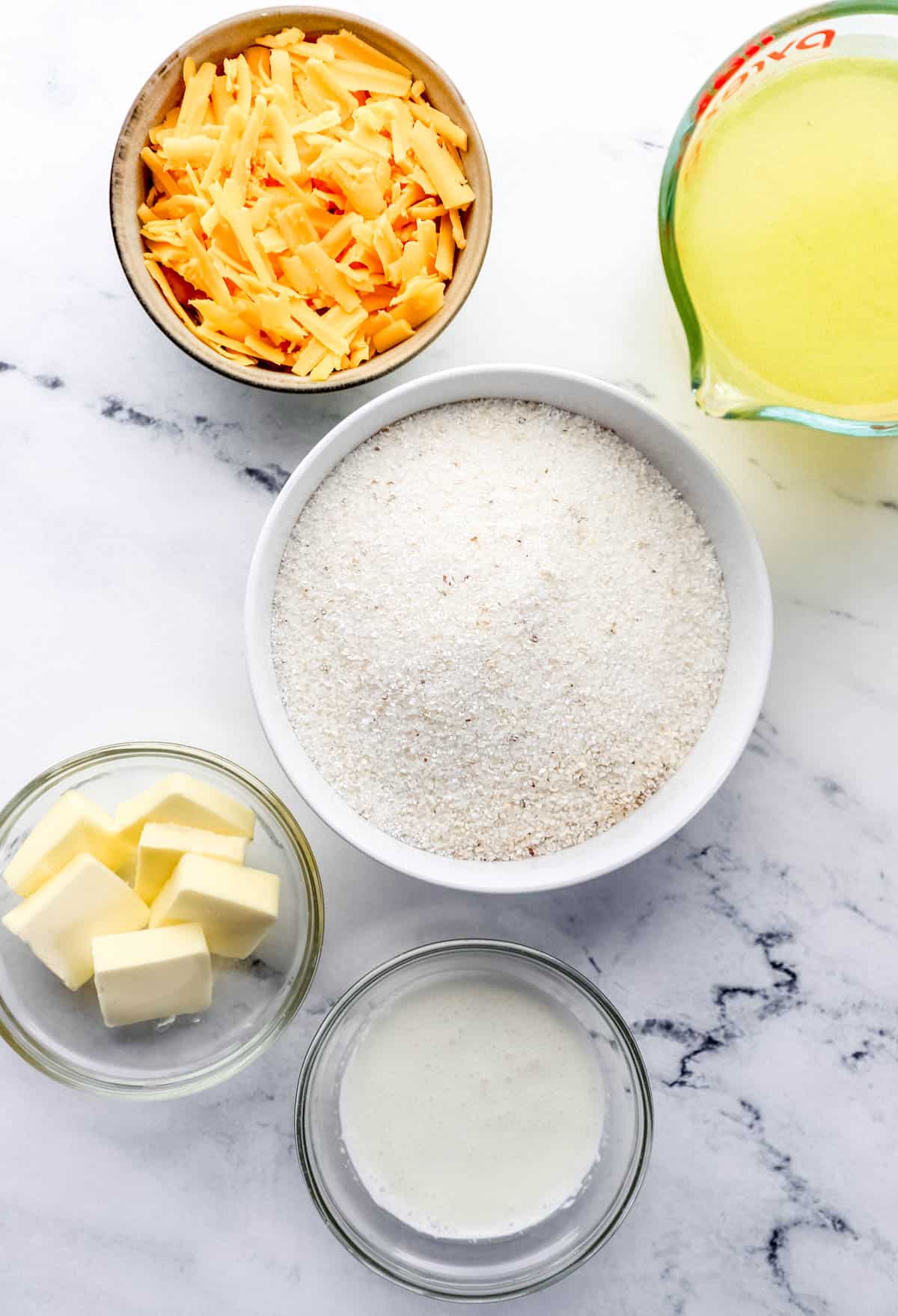 - Grits -The main ingredient required to make grits. I prefer to use quick grits or quick cooking grits. They're finely ground and cook slightly quicker than old fashioned grits. Feel free to use any that you prefer, just keep in mind that different types may require you to adjust the cooking time.